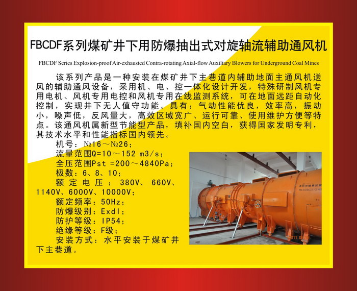 简要说明:FBCDF系列煤矿井下用防爆抽出式对旋轴流辅助通风机